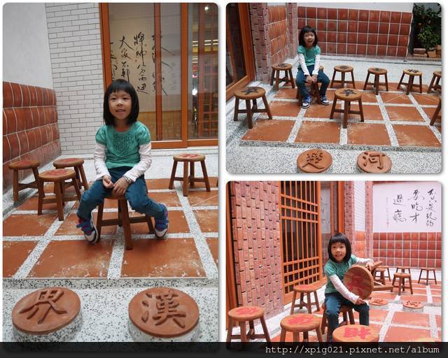 小瑀沒看過象棋..不懂楚河、漢界..也不懂棋子為什麼分紅色跟黑色..只覺得椅子上有字..很特別..