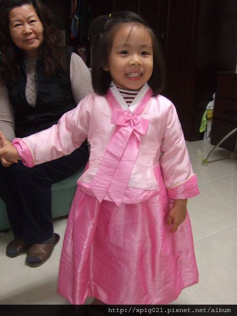 小姑婆從台東回來高雄幫阿祖做百日..帶了一套可愛的韓國正式服裝..之前她去韓國買回來送給朋友的孫女..只穿過一次..長大不能穿了..要回來送給小瑀穿..當場馬上來試穿看看..剛剛好ㄟ.很可愛..過年的服裝有著落囉..p.s媽咪沒有任何政治色彩..請純粹以欣賞的角度來看待..請不要有任何不當言論..