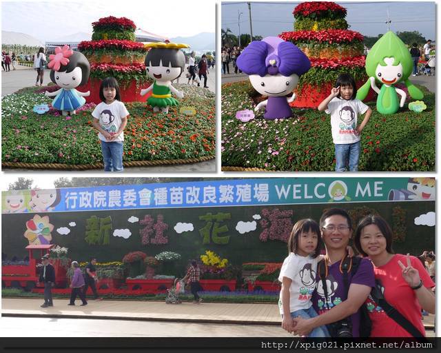 一家三口繼續逛新社花海..花毯節超美麗地..拍了好多好多照片喔