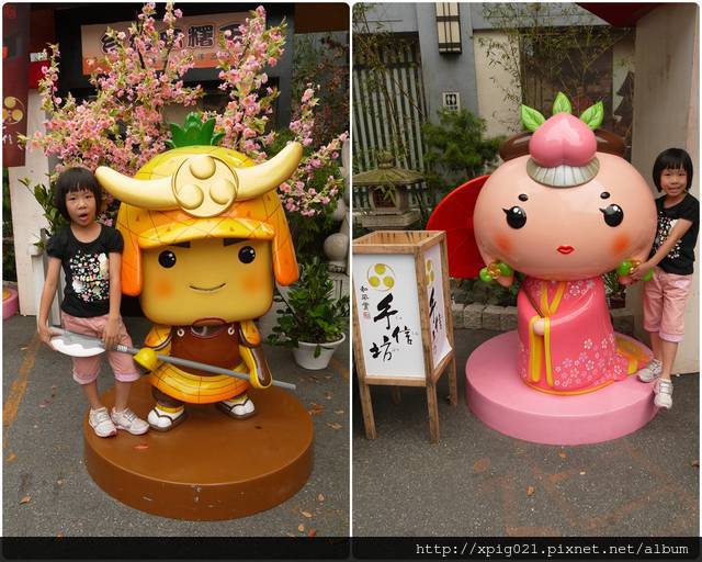 門口的大廣場有好多隻可愛..不同造型的日本風公仔..