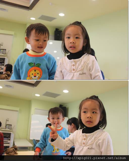 等待開演時間..胖叔叔又播放到體能課教過的歌曲2首..小瑀跟一位小弟弟(應該也是有上體能課地)..開心的跳舞..