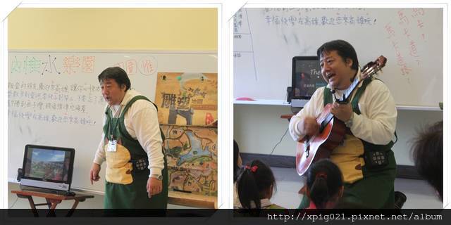 沒有故事書圖片可以吸引目光..胖叔叔很用心地帶電腦來播放照片、影片給大家看..