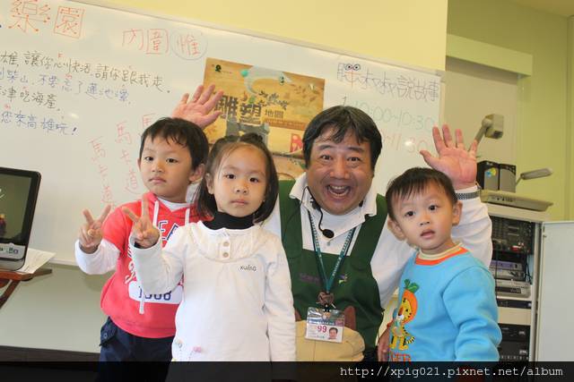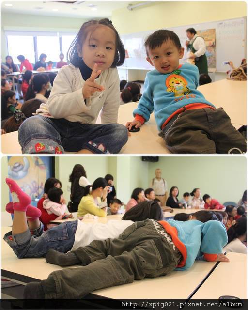 聽故事活動一開始..先來幾句英日語的團康活動..有趣..但我看小瑀嘴巴都沒跟著念..