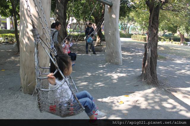 好久沒玩盪鞦韆了..難得今天沒人玩..3隻小豬剛好一個人坐一個..