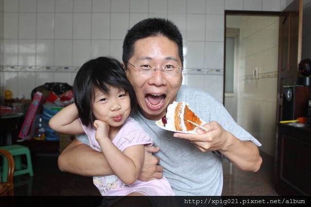 為了不讓爸爸們心理不平衡..於是在八八節訂了一個蛋糕..歐貝拉的焦糖櫻桃蛋糕..