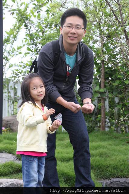 用完餐後..小孩可以領一包魚飼料..到後方魚池餵魚..