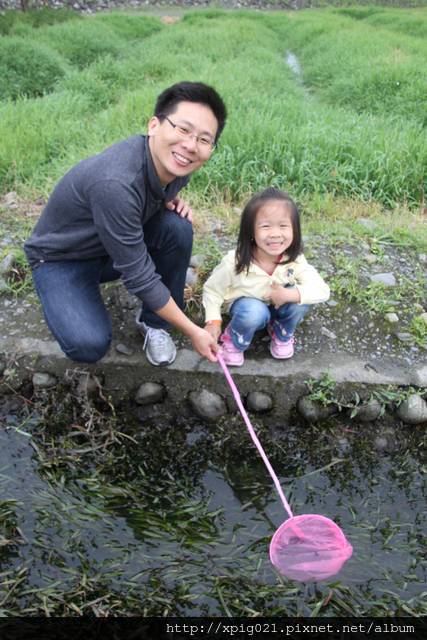 趁機讓小瑀撈撈看..把網子往水草裡搓一搓..看看蝦子有沒有在網子裡..
