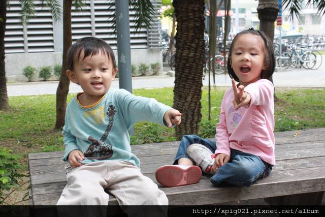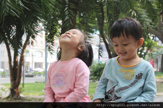 這張表情好自然喔..小瑀不知為何仰天長笑..小星星則是媔靦地笑著..