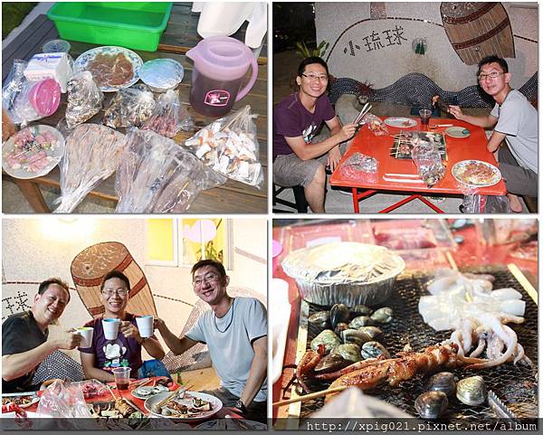 晚餐請民宿幫我們帶訂BBQ食材$250*4份..烤肉用具、桌椅、燈具由民宿提供..