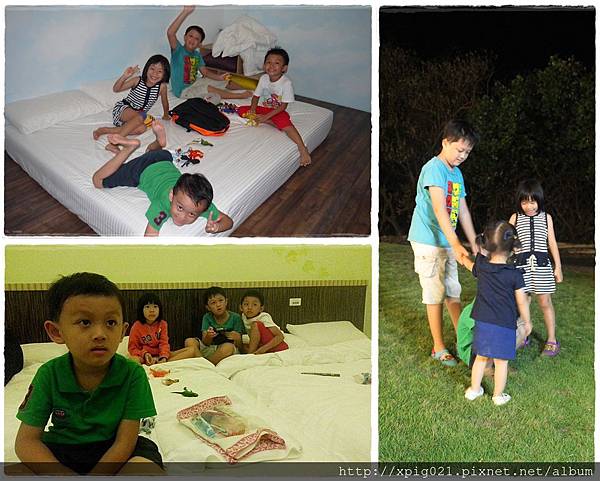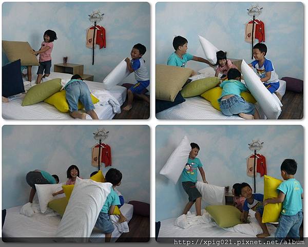 等待10點鐘的潮間帶活動..吃飽的小孩們又相約到房間內玩枕頭大戰..