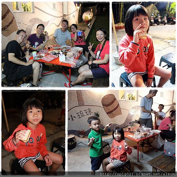 除了小溍拔陪小花妹妹睡覺留守..其他都出席參與..因爸比們喝酒..改由媽咪們騎車出遊、互載..