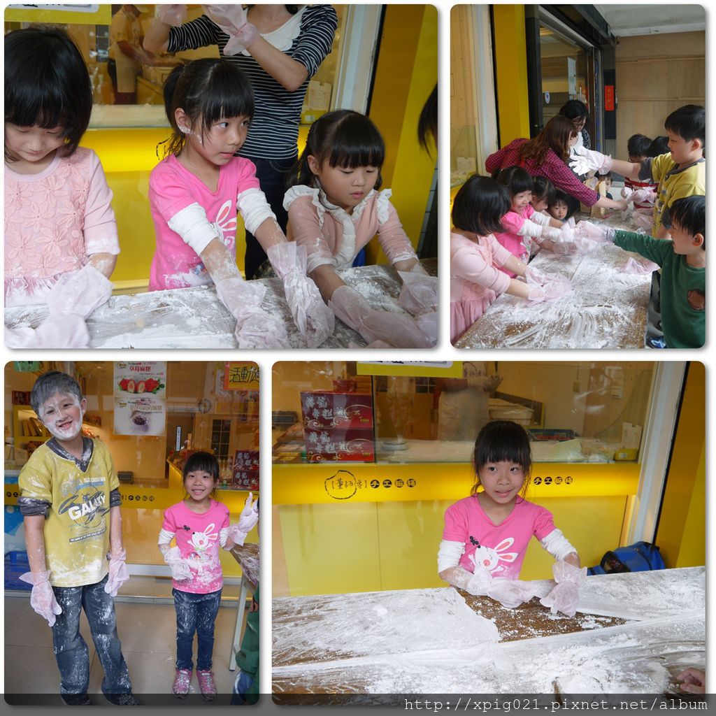 現場有一具石磨..加入麵粉跟水..讓小孩推一圈..假裝磨米的fu..
