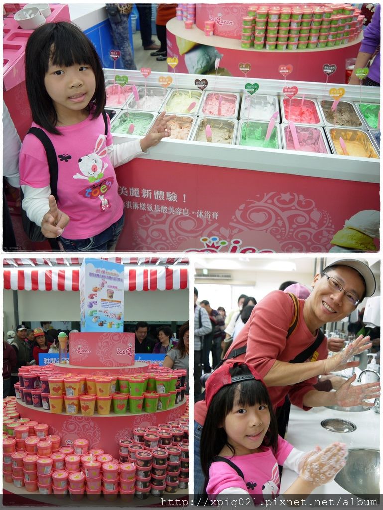 而冰淇淋花車上五顏六色的是肥皂..看想試洗哪幾種味道..請服務員挖一點去洗看看..