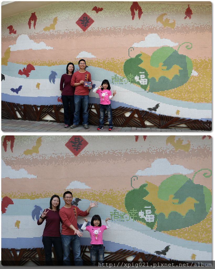 繞了一圈才發現生態館的牆壁是一大幅馬賽克壁畫「預約幸蝠」..真是漂亮..