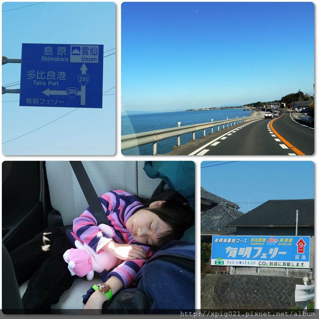 B、搭渡輪-可從多比良港或島原外港坐船..開車約2小時..搭船需30-45分鐘..司機可趁坐船時間休息、交通費較便宜