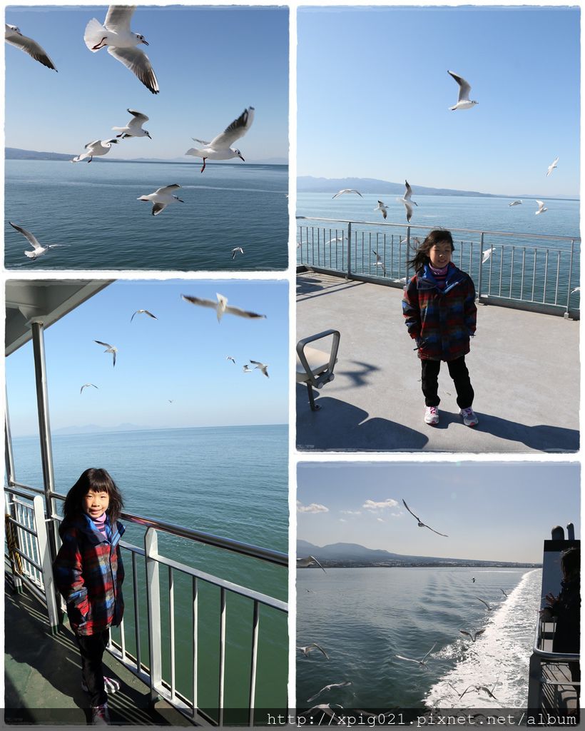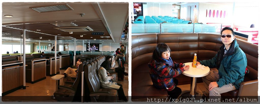 渡輪準時啟動出發..那時小瑀還因為愛睏被挖起床..臉很臭..對周遭事物都興趣缺缺..