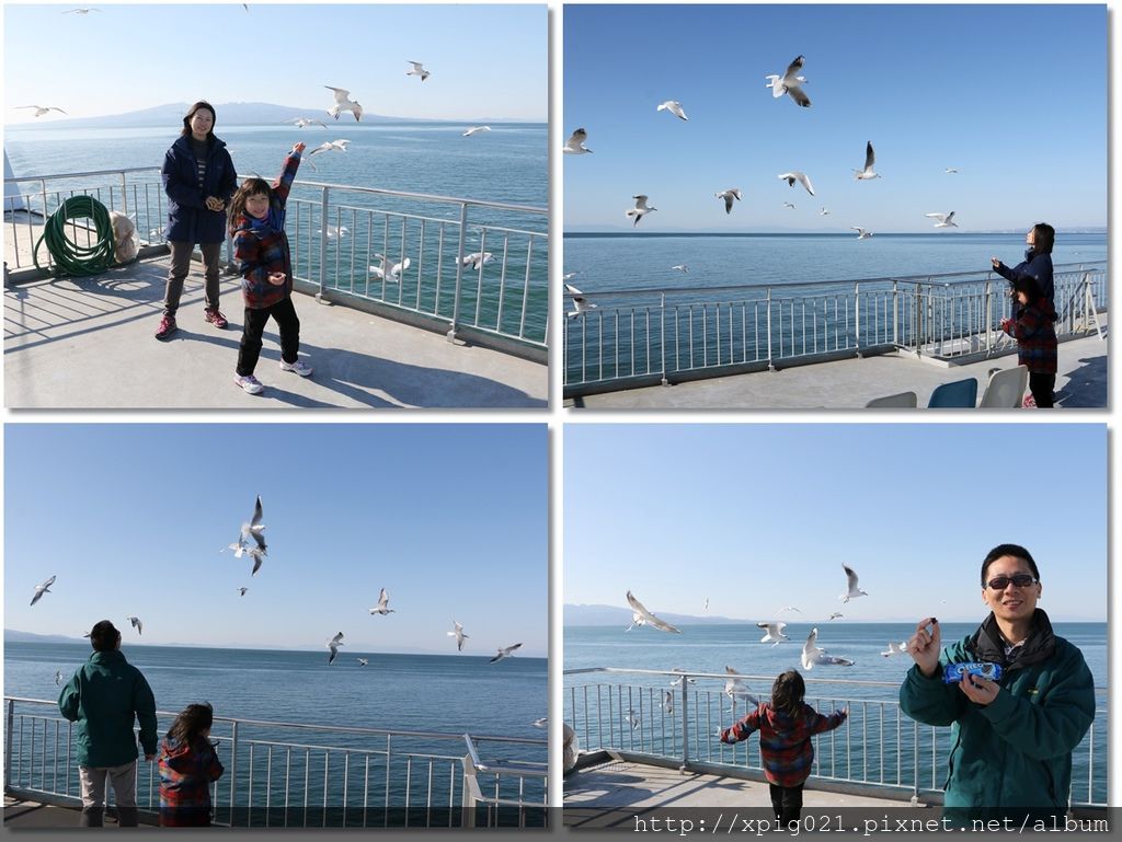 過會一兒..看到外面海鷗成群飛舞..媽咪提議來餵海鷗..小瑀才恢復了精神、有點笑容..
