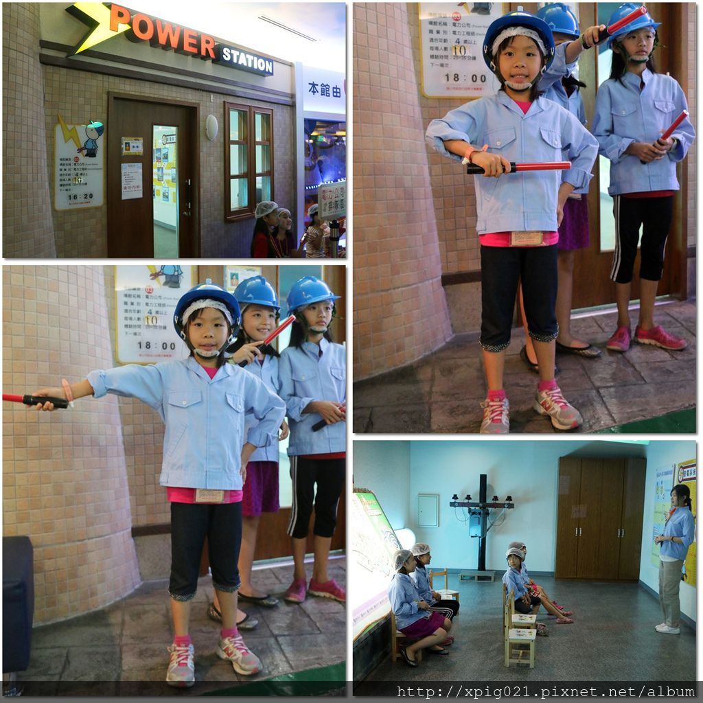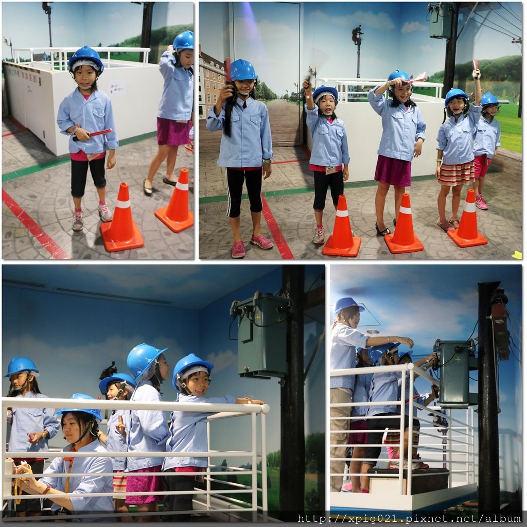 接著..到工地現場搭乘升降梯修理電線桿..有模有樣地..還真好玩~