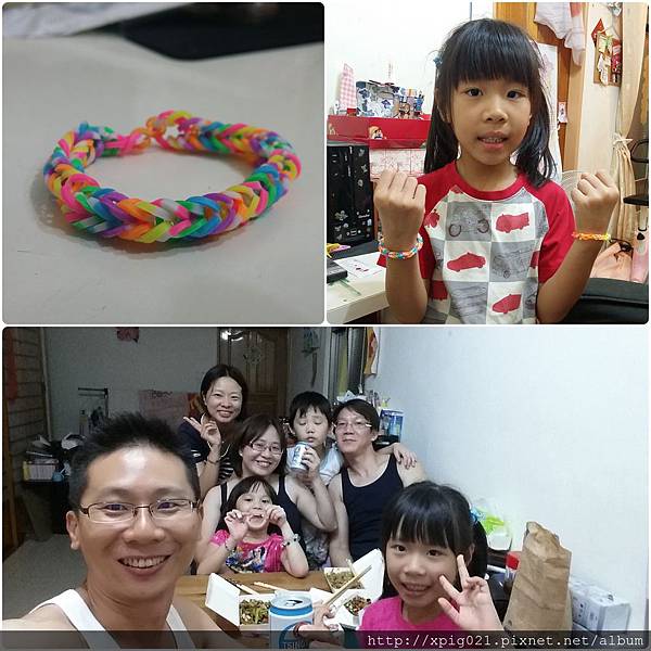 晴晴表姊教小瑀玩最夯的橡皮筋編織..馬上就完成一條..真厲害..