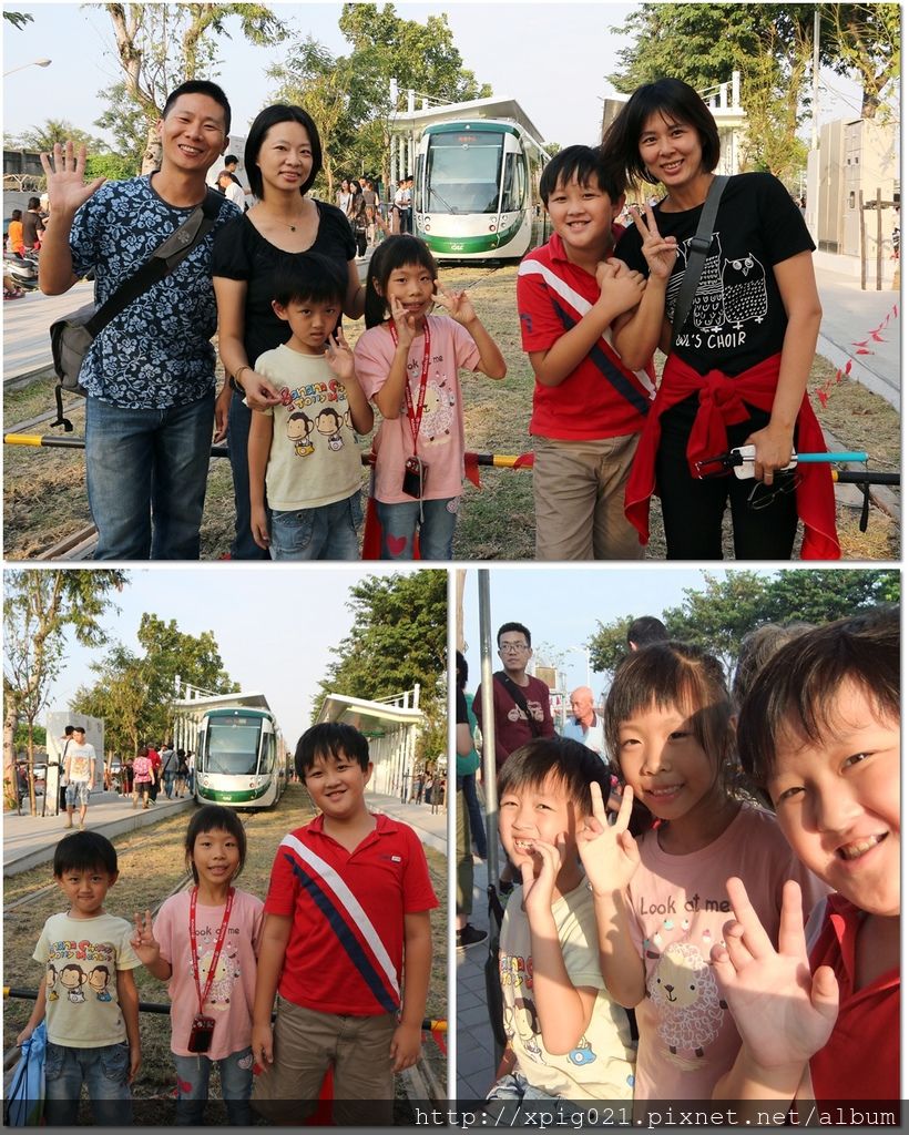 哇~現場來參觀的民眾人數蠻多地..大家都狂拍輕軌車廂的模樣..外型還不錯看啦~