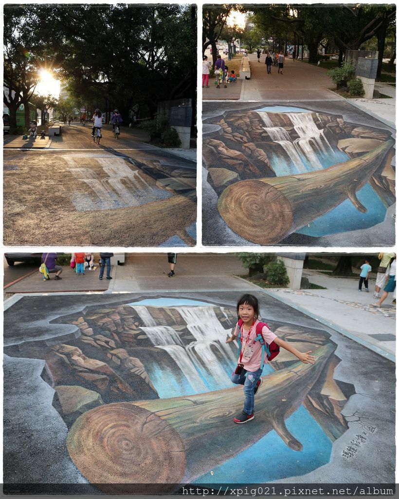 Wow..地面上有一幅3D瀑布圖ㄟ..畫得很不錯喔~