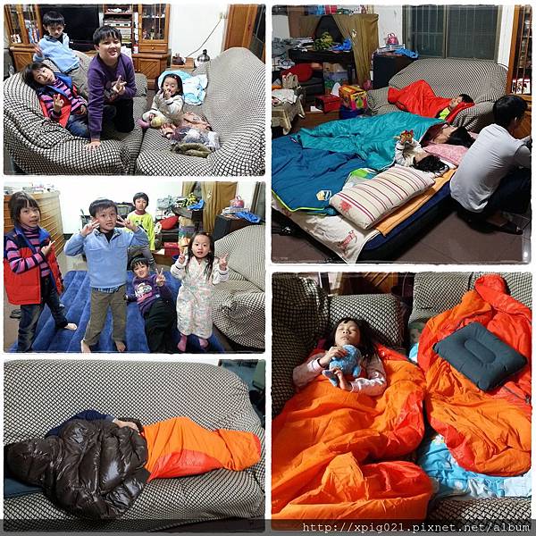 小溍家睡露營的充氣床..我們一家三口分別睡在沙發上..這一晚..大夥睡得很飽、溫暖..留下超難忘的回憶..