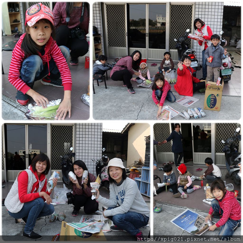 接著..又忙碌地處理控窯食物..先包上鋁箔紙..外層再包上報紙..免得烤焦..