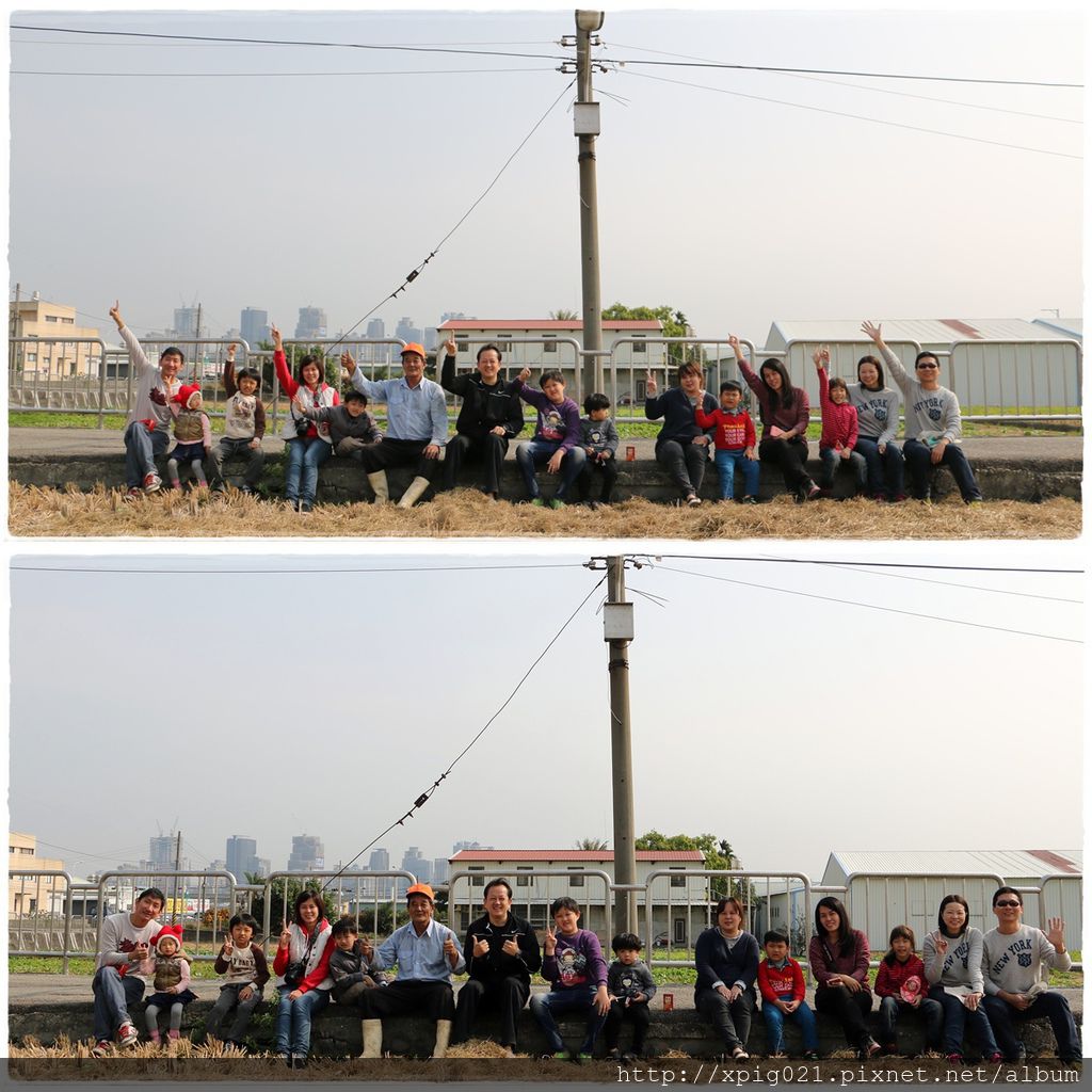 坐在田埂旁休憩片刻..大夥排排坐來拍照..小星星的外公很配合拍照姿勢..超可愛地..