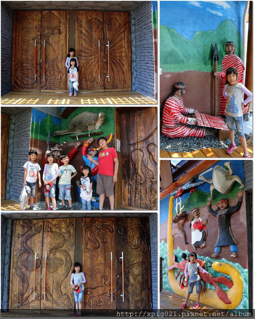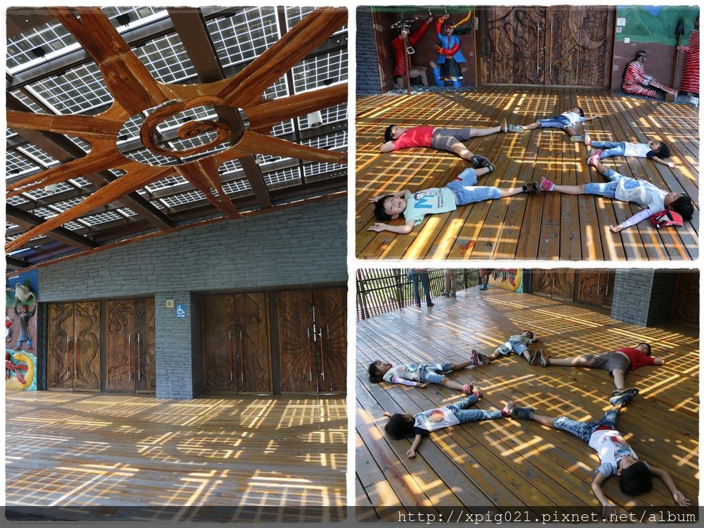 沿著斜坡走道走道一處平台..有原住民文化的布景、圖騰..