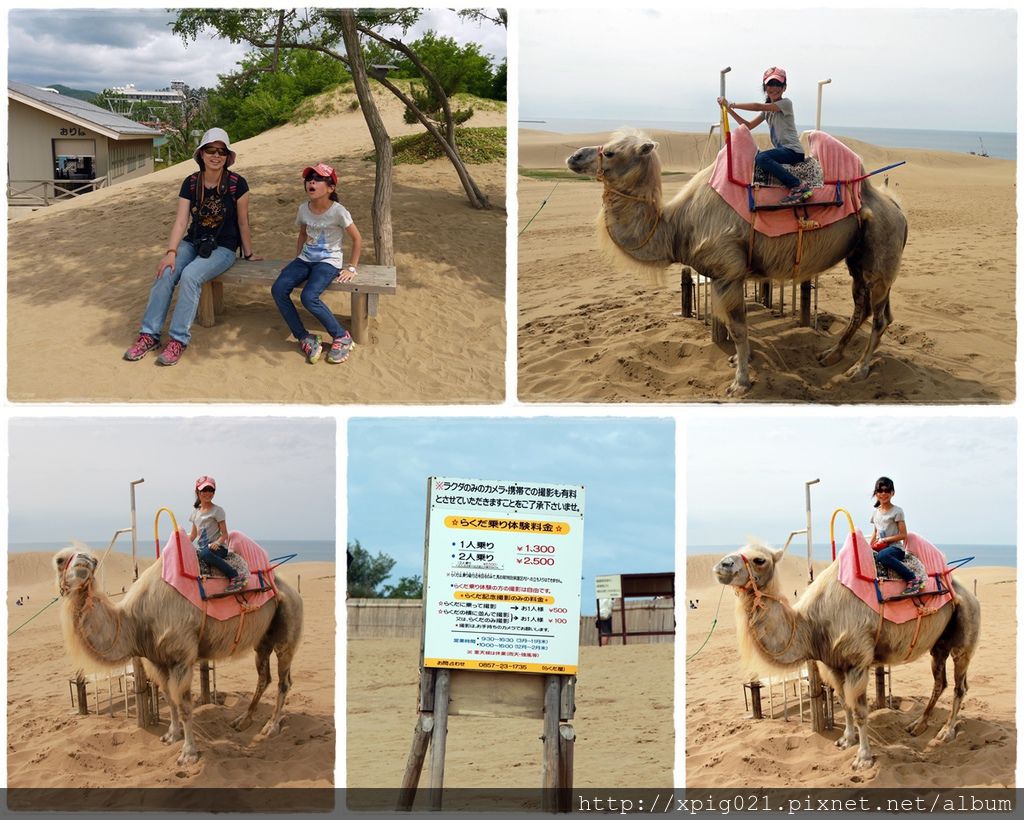 騎乘地點在砂丘纜車站附近..費用-「騎駱駝」散步走一圈的話..1人¥1300、2人共乘¥2500..