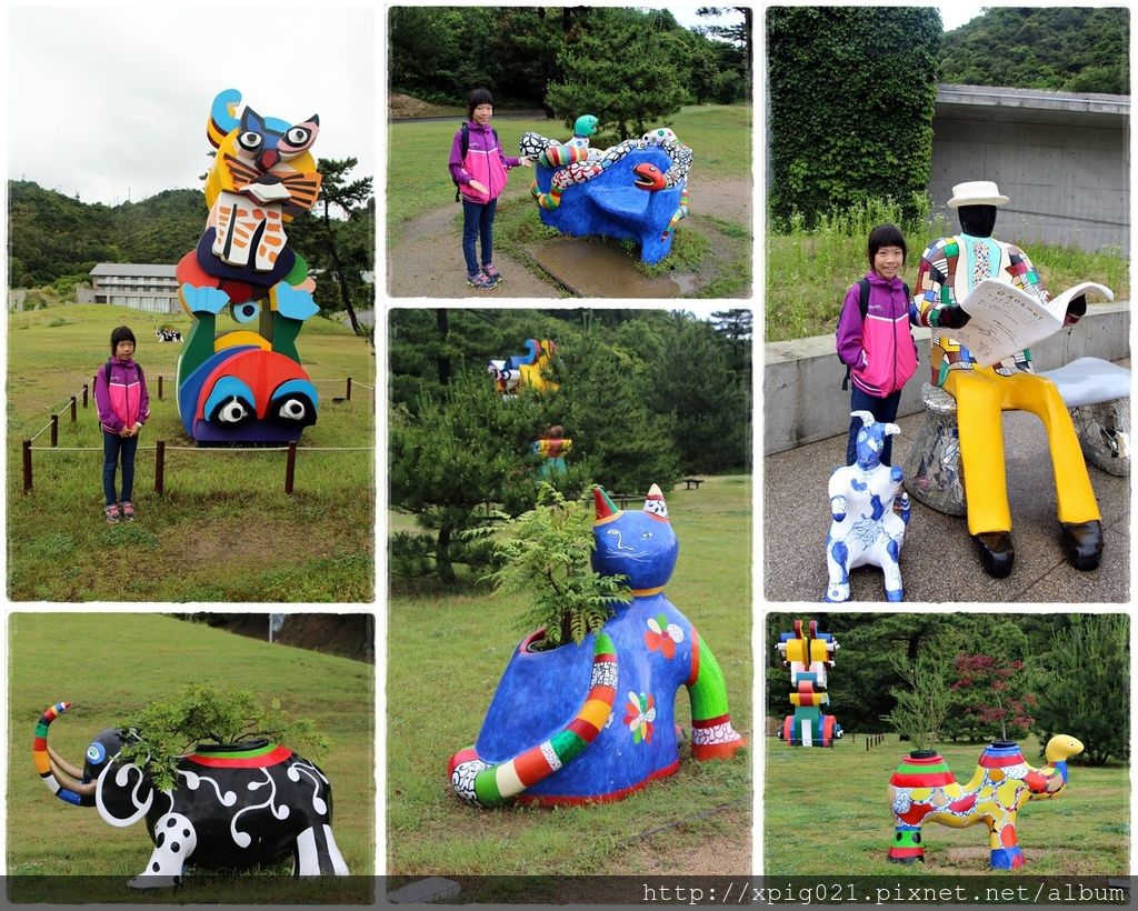 接著往右繼續走下去..來到一片草地..上面有好幾個五顏六色的動物藝術品..還不錯看唷~
