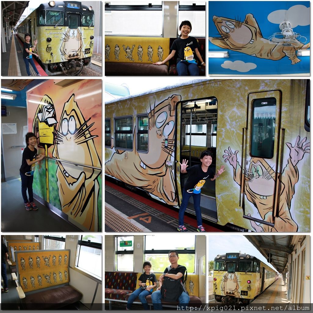 從JR米子駅搭乘〈境線〉特有的「妖怪列車」前往境港..每一小時一班普通列車..路程約45分鐘..