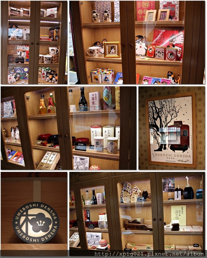 梅星電車內部擺設了許多櫥窗..有可愛的小玉貓站長周邊商品..