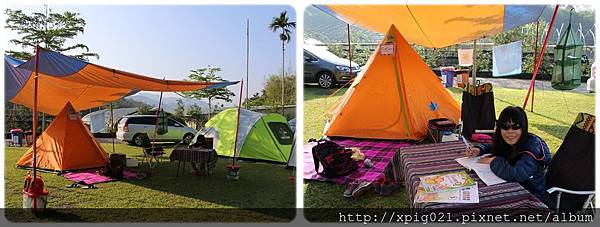 睡覺前特地把帳棚後方的天幕拉到最低..期許不要被太陽曬醒...