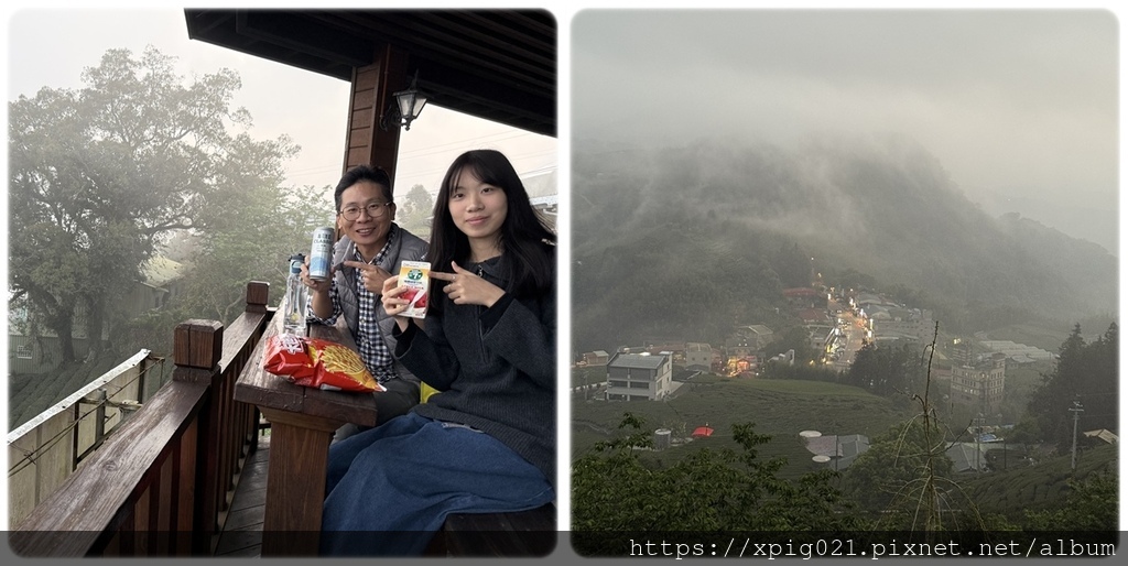 阿里山區晚上..如同民宿主人說得很無聊..我們窩在房間划手機、喝飲料、吃零食..很放鬆~![]()