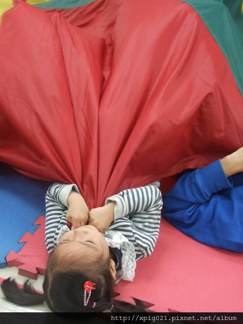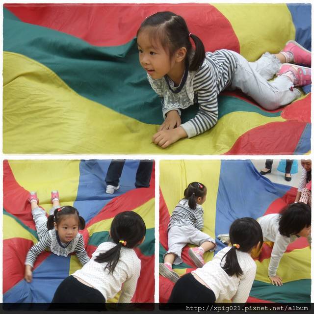 有美人魚...女生都跑到帆布上變成美人魚..游來游去..