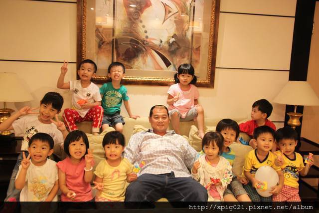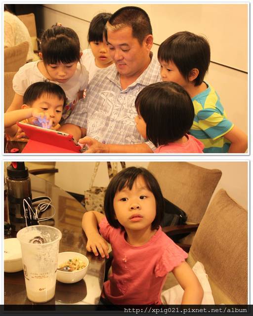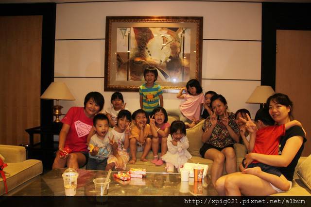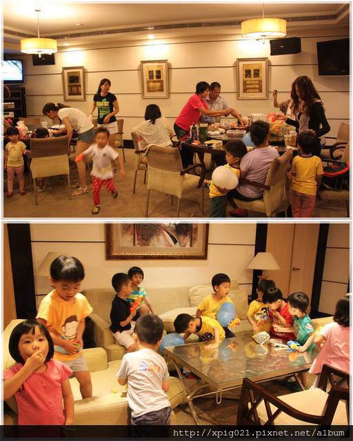 找到最吵鬧的那間包廂..裡頭非常熱鬧..小孩們馬上打成一片..